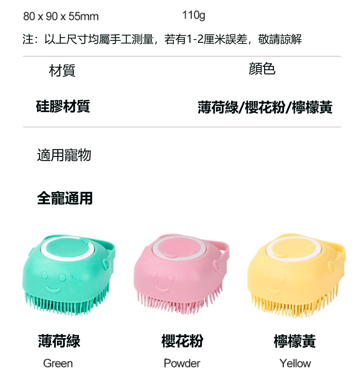 這款硅膠按摩刷為寵物貓狗洗澡搓澡神器、洗澡按摩清潔工具結合了洗澡和按摩功能,讓您可以一次完成寵物的清潔和按摩護理。防滑手提設計和可裝沐浴乳的特點,讓您可以輕鬆使用並保持手部乾淨。
